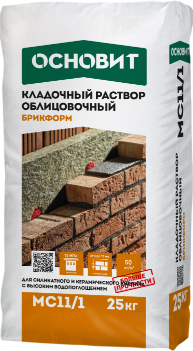 • БРИКФОРМ MC11/1 цветной кладочный раствор для облицовочного кирпича с очень высоким водопоглощением ОСНОВИТ